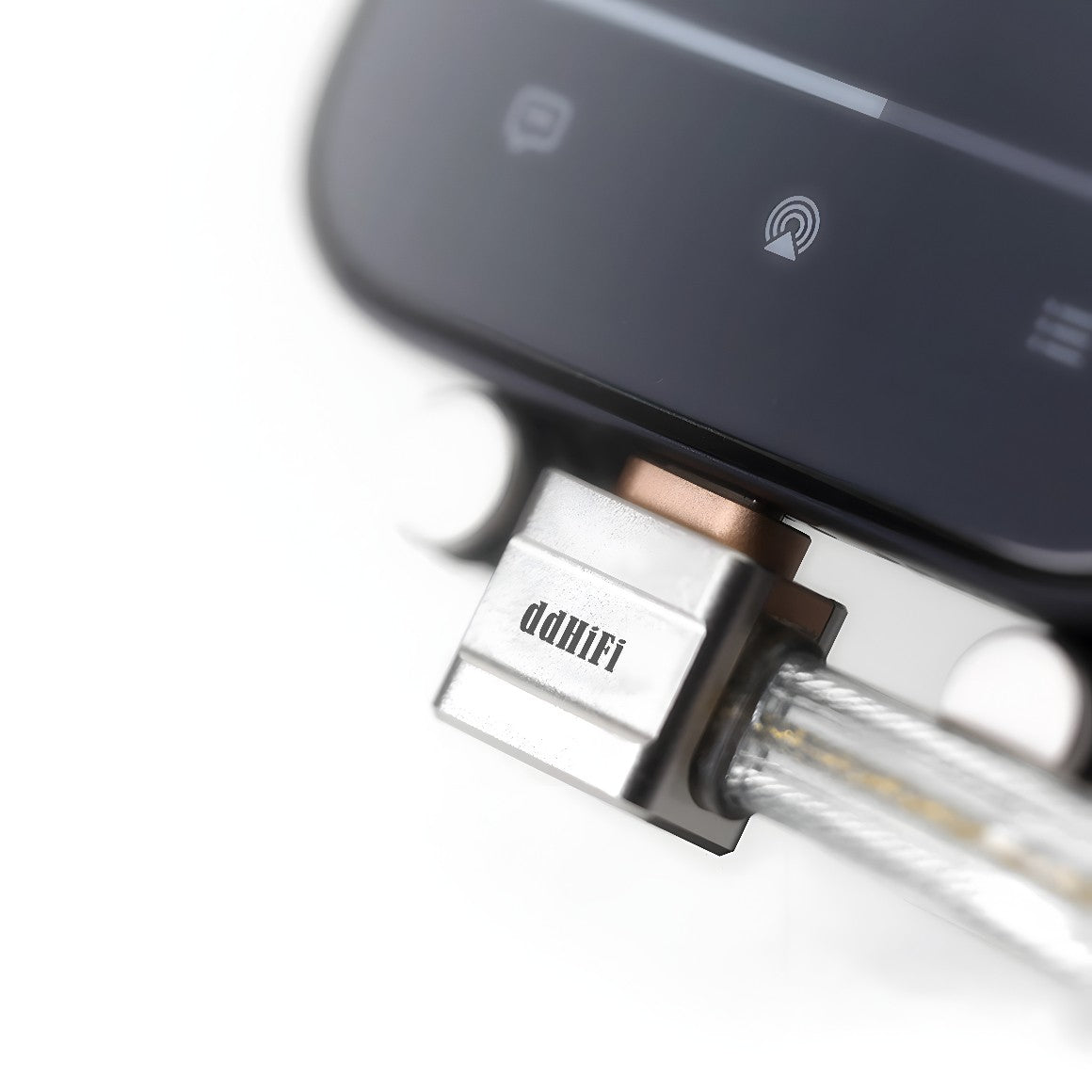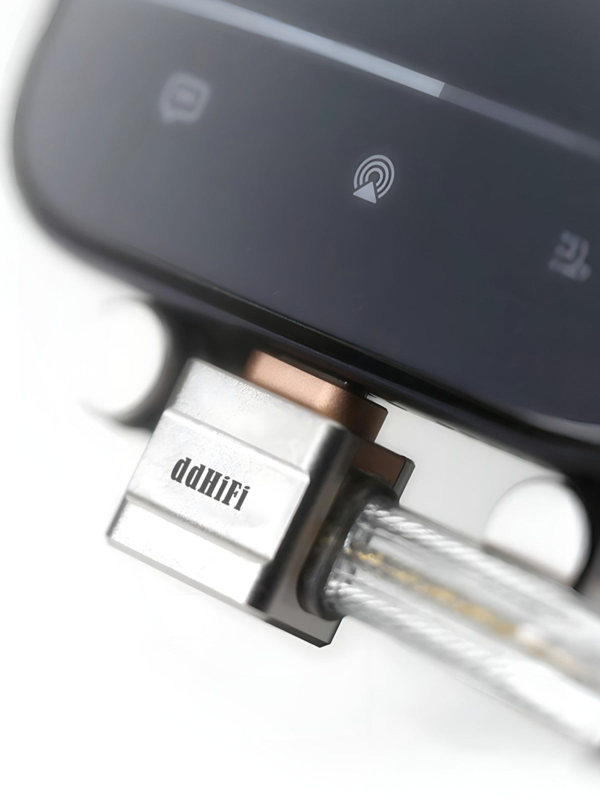 The cable is built with a directional connection system to optimise signal performance. The end marked with the gold ddHiFi logo is intended for the source device such as a smartphone or computer, while the opposite end connects to the DAC or audio device. This ensures proper signal routing and maintains consistent audio accuracy throughout the chain.